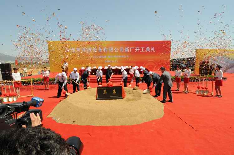 上圖為大連市市委書記夏德仁等領導為寶原新址奠基
