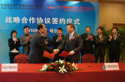2025年12月14日,遼機集團與中國信達資産管理股份有限公司戰略合作協議簽約儀式在哈爾濱香格裡拉酒店舉行。雙方一緻同意在各自掌握的相關資源及資本市場領域展開全方位合作,并簽署《戰略合⭐作協議》。
