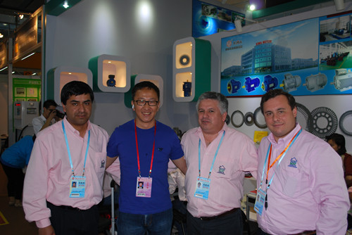 第110屆廣交會上遼機集團大連進出口分公司代表與客戶🔞合影