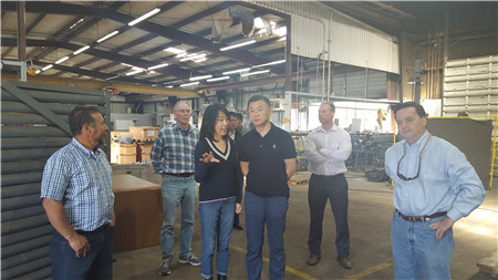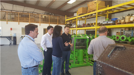 赴美考察期間,吳岩董事長帶領考察團與美國API石油閥門制造企業AES公司在國際貿易合作和投資方面進行了友好洽談,完成了出口訂單的簽訂。參觀考察石油服務Canon公司,聽取了技術人員對該公司新研發井下探測技術和設備的介紹,并就同Canon公司業務範圍的合作進行了深入探讨。