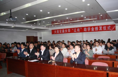 2010年9月28日上午,吳岩董事長出席大連交通大學“遼機”助學金頒發王豔主持。