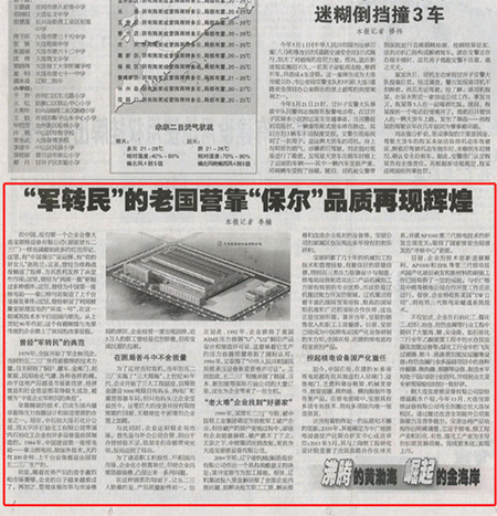 大連日報在2025年12月13日A4版中,以“‘軍轉民’的老國營靠‘保爾’品質再♋現輝煌”為标題對大連寶原核設備有限公司進行🐅了報道。原文轉載如下: