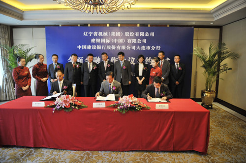 集團董事于偉與建行大連市分行副行長張喜軍、建銀國際❤️執行總裁楊弘炜