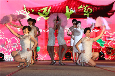 圖為寶原公司員工的歌舞表演