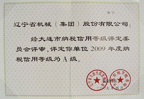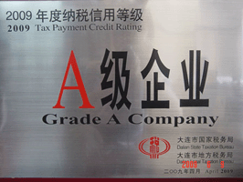 大連市納稅(shui)信用等級A級證(zheng)書